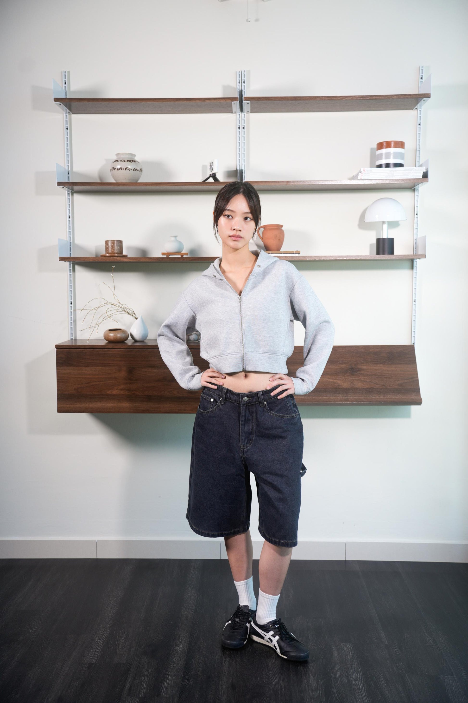 Wide-leg denim jorts with a worn-in vintage look, finished with an enzyme wash for added softness and comfort. Designed with two back patch pockets.